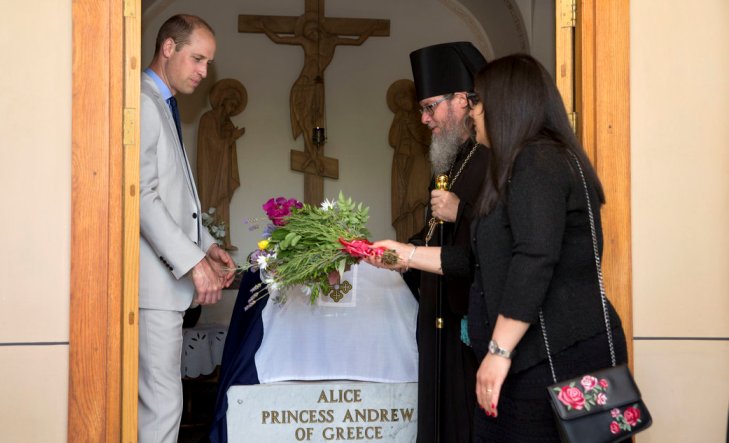 Ο Γουίλιαμ της απέτισε φόρο τιμής επισκεπτόμενος τον τάφο της και αφήνοντας μερικά λουλούδια. Κατά την είσοδό του στην εκκλησία, ο Γουίλιαμ πήρε ψωμί και αλάτι. Ο αρχιμανδρίτης Ρομάνιος της Ρωσικής Ορθόδοξης Εκκλησίας τον ξενάγησε.