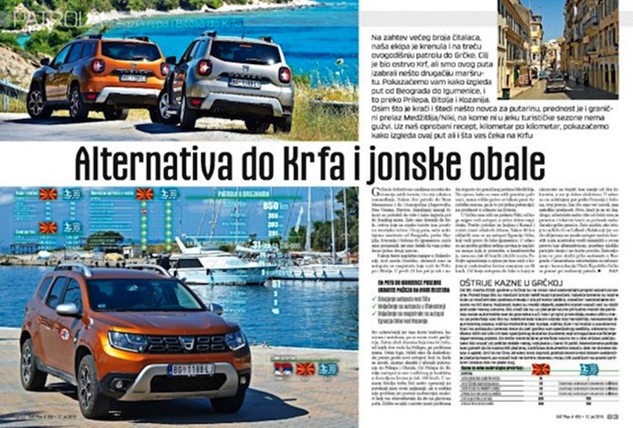 Οδοιπορικό από το Βελιγράδι μέχρι την Κέρκυρα, μέσω της συνοριακής διάβασης της Νίκης, δημοσιεύτηκε στο δεκαπενθήμερο περιοδικό για θέματα οδήγησης και τουρισμού SAT plus, στις 12 Ιουλίου 2018.