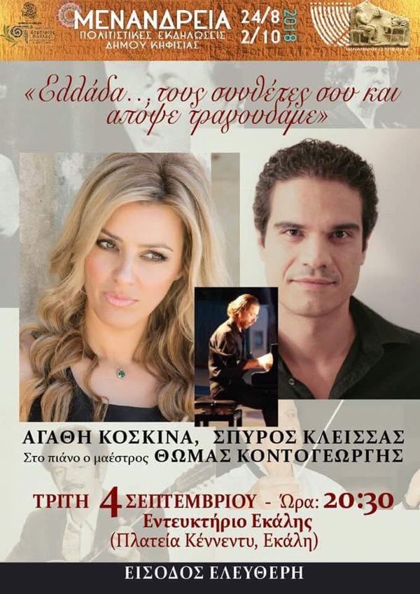 Μια σημαντική συμμετοχή θα πραγματοποίησει η Κερκυραία μουσικός, Αγάθη Κοσκινά, στα φετινά Μενάνδρεια του Δήμου Κηφισιάς που θα γίνουν στις 4 Σεπτεμβρίου.