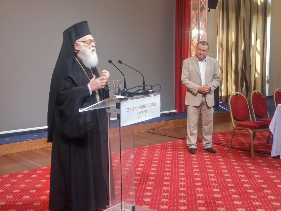 Ιδιαίτερα συγκινημένος ήταν ο Αρχιεπίσκοπος Τιράνων, Δυρραχίου και πάσης Αλβανίας, κ. Αναστάσιος κατά τη διάρκεια της τιμητικής εκδήλωσης που παρέθεσε η Περιφέρεια Ιονίων Νήσων, στο Αχίλλειο.
