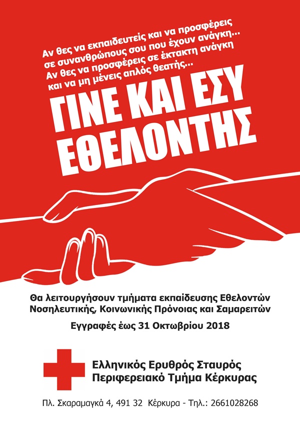Κάλεσμα του Περιφερειακού τμήματος Κέρκυρας για νέους εθελοντές.