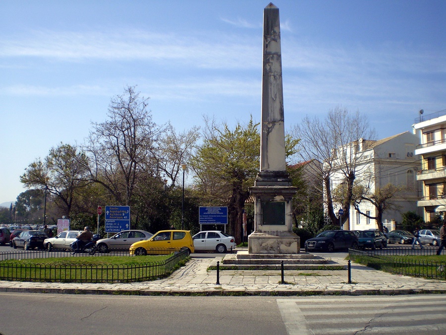 O oβελίσκος είχε αρχικά τοποθετηθεί εκεί που βρίσκεται η προτομή του Σολωμού προς τιμήν του Άγγλου Αρμοστή Howard Douglas.