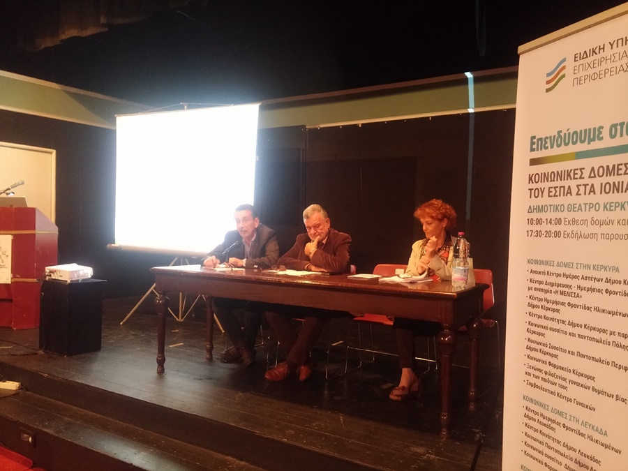 Εκδήλωση με θέμα «Επενδύουμε στον άνθρωπο: Κοινωνικές δομές και δράσεις του ΕΣΠΑ στα Ιόνια Νησιά» διοργάνωσαν, χθες το απόγευμα, η Περιφέρεια Ιονίων Νήσων και η Ειδική Υπηρεσία Διαχείρισης Ε.Π. Ιονίων Νήσων, στο πλαίσιο καμπάνιας ενημέρωσης για τις ευρωπαϊκές πολιτικές συνοχής.