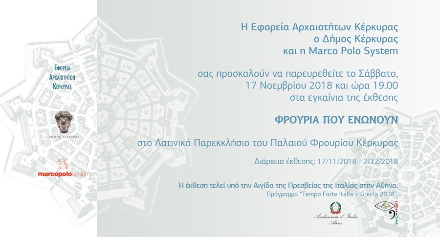 Συνδιοργανώνεται από την Εφορεία Αρχαιοτήτων Κέρκυρας και το Δήμο Κέρκυρας και τελεί υπό την αιγίδα της Ιταλικής Πρεσβείας στην Αθήνα (Πρόγραμμα “Tempo Forte Italia – Grecia 2018”, «Πρόγραμμα του Φθινοπώρου»).