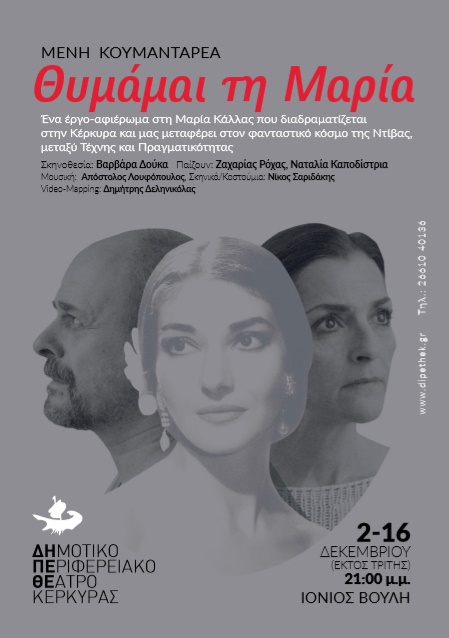 Το ΔΗΠΕΘΕ ΚΕΡΚΥΡΑΣ ξεκινάει τις παραστάσεις της ΚΕΝΤΡΙΚΗΣ του ΣΚΗΝΗΣ στην ΙΟΝΙΟ ΒΟΥΛΗ στις 2 Δεκεμβρίου (ημέρα γενεθλίων της Μαρίας Κάλλας), με το έργο του Μένη Κουμανταρέα ‘Θυμάμαι τη Μαρία’.
