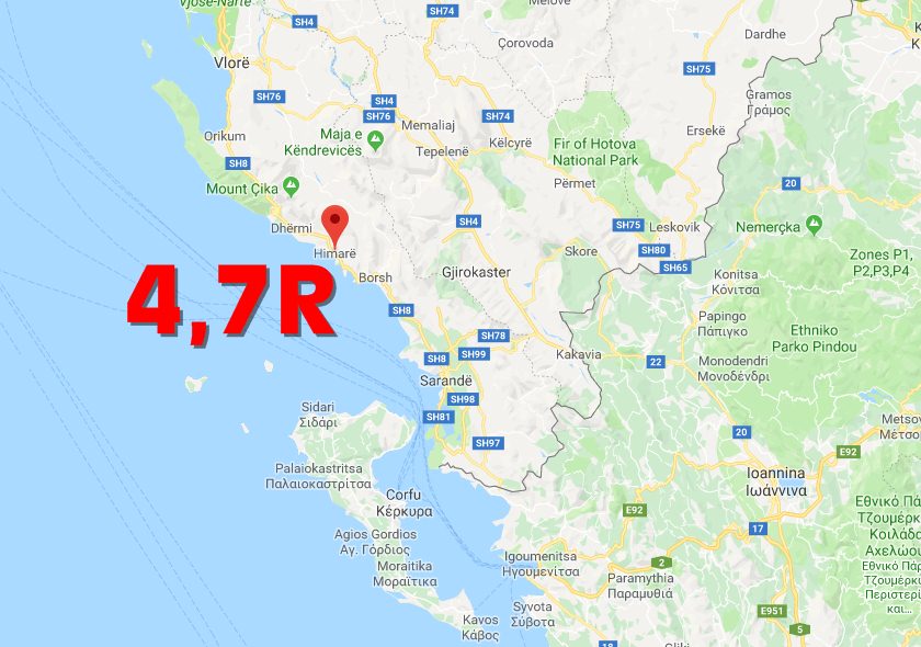 Σεισμική δόνηση μεγέθους 4,7R σημειώθηκε στις 21:37 το βράδυ της Παρασκευής, 59 χιλιόμετρα βόρεια της Κέρκυρας κοντά στην πόλη της Χειμάρρας.