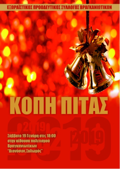 Ο Εξωραϊστικός Προοδευτικός Σύλλογος Βραγκανιωτίκων θα κόψει την πρωτοχρονιάτικη πίτα του το Σάββατο 19 Ιανουαρίου, στις 6 το απόγευμα, στην αίθουσα πολιτισμού Βραγκανιωτίκων “Διονύυσιος Σολωμός”