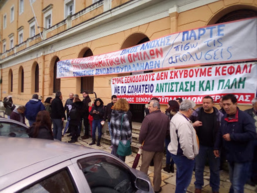 Παράσταση διαμαρτυρίας στον ΟΑΕΔ πραγματοποίησαν το πρωί της Παρασκευής, ο σύνδεσμος ξενοδοχ/λων και σωματεία εργαζομένων σε ξενοδοχεία του νησιού, διεκδικώντας την επίλυση των αιτημάτων τους.