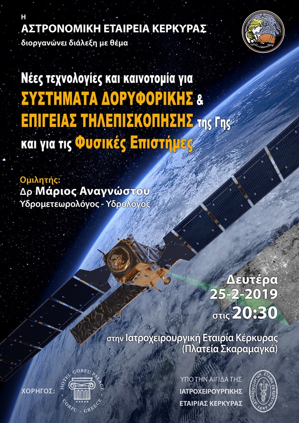 Η Αστρονομική Εταιρεία Κέρκυρας διοργανώνει διάλεξη με θέμα: «Νέες τεχνολογίες και καινοτομία για Συστήματα Δορυφορικής & Επίγειας Τηλεπισκόπησης της Γης και για τις Φυσικές Επιστήμες»