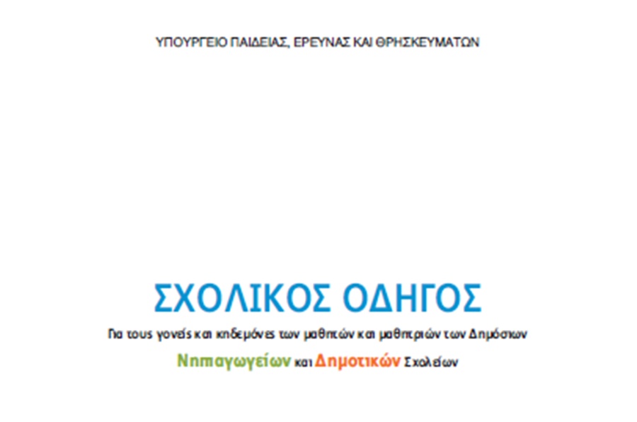 Το Υπουργείο Παιδείας, Έρευνας και Θρησκευμάτων παραδίδει στην σχολική κοινότητα τον Σχολικό Οδηγό, ο οποίος τις επόμενες μέρες θα διανεμηθεί στους γονείς και κηδεμόνες των μαθητών και μαθητριών των Δημόσιων Νηπιαγωγείων και Δημοτικών Σχολείων όλης της χώρας.
