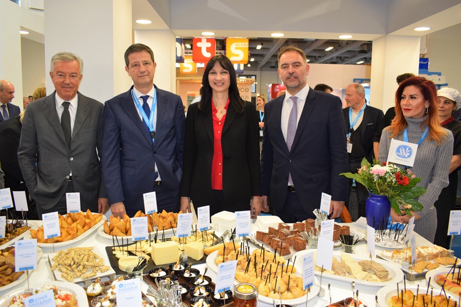 Η Ελλάδα έχει ενισχυμένη φέτος παρουσία στην έκθεση του Βερολίνου με μεγαλύτερο περίπτερο 870 τ.μ. όπου φιλοξενούνται 81συνεκθέτες. Στο ελληνικό περίπτερο την πρώτη ημέρα της ITB πραγματοποιήθηκε ειδική εκδήλωση παρουσίασης για πρώτη φορά στη γερμανική αγορά του «Ελληνικού Πρωινού» του Ξενοδοχειακού Επιμελητηρίου Ελλάδος (ΞΕΕ), στο πλαίσιο της στρατηγικής του Υπουργείου για την προώθηση της ελληνικής γαστρονομίας και ανάδειξη των ελληνικών προϊόντων.Στην εκδήλωση η κα Κουντουρά τόνισε ότι η προώθηση και προβολή διεθνώς της ελληνικής γαστρονομίας αποτελεί στρατηγική επιλογή, γιατί «οι επισκέπτες όταν δοκιμάζουν τις γεύσεις της Ελλάδας, μεταφέρουν την εμπειρία τους στο εξωτερικό και γίνονται πρεσβευτές της χώρας μας, διαφημίζοντας και προβάλλοντας τον προορισμό και τα προϊόντα του».