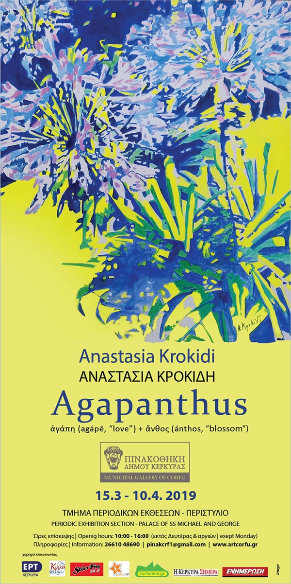 Στην Πινακοθήκη Δήμου Κέρκυρας εγκαινιάζεται την Παρασκευή 15 Μαρτίου & ώρα 7:30 μ.μ., η ατομική έκθεση ζωγραφικής της Αναστασίας Κροκίδη με τίτλο “Agapanthus”.