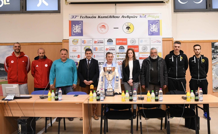 Στην αίθουσα «Αλέκα Σιούλη», του Παμπελοποννησιακού Σταδίου, φιλοξενήθηκε η Συνέντευξη Τύπου, για τον 37ο Τελικό Κυπέλλου «Λουξ Plus ‘n Light», ανάμεσα στον Ολυμπιακό ΣΦΠ/ Όμιλος Ξυνή και την ΑΕΚ.