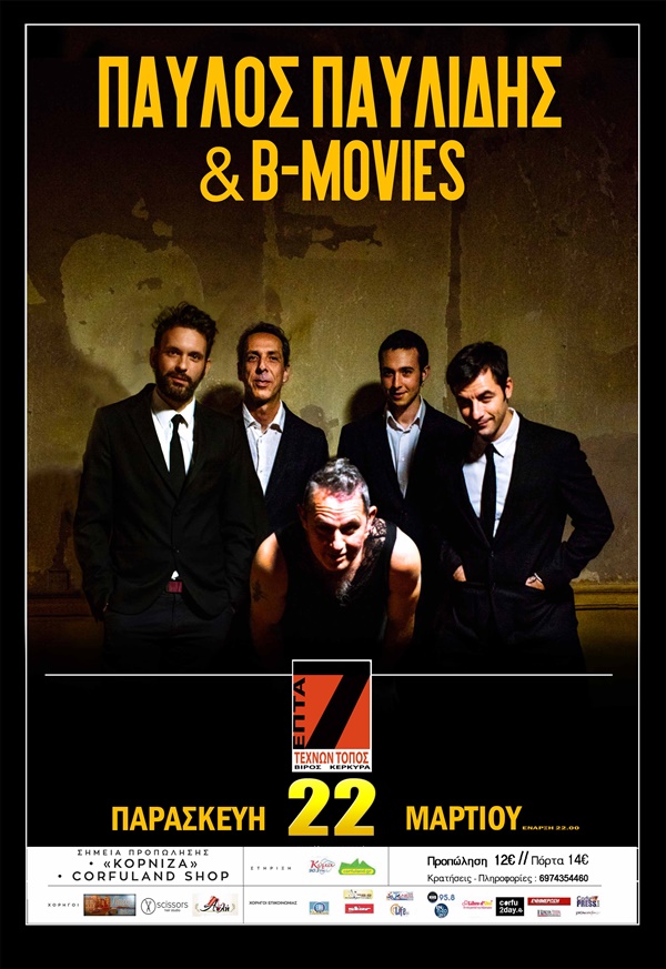 Ο Παύλος Παυλίδης & οι B-movies έρχονται στο γνώριμο ΕΠΤΑ, Τεχνών Τόπος στις 22 Μαρτίου 2019 για τη μία και μοναδική τους εμφάνιση φέτος το χειμώνα στην Κέρκυρα.