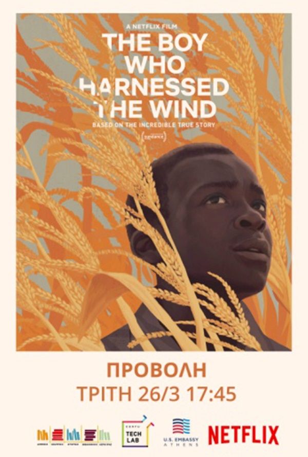 Το Corfu Tech Lab και η Δημόσια Κεντρική Ιστορική Βιβλιοθήκη Κέρκυρας διοργανώνουν προβολή της ταινίας “Το αγόρι που δάμασε τον άνεμο” (παραγωγής 2019) την Τρίτη 26 Μαρτίου στις 17:45.