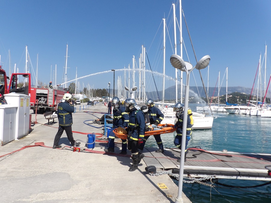 Με απόλυτη επιτυχία πραγματοποιήθηκε την Παρασκευή, άσκηση πυρασφάλειας στην Μαρίνα Γουβιών με σενάριο «Αντιμετώπιση περιστατικού πυρκαγιάς σε ιστιοπλοϊκό σκάφος με απεγκλωβισμό θύματος και μεθόρμιση παράπλευρων σκαφών».