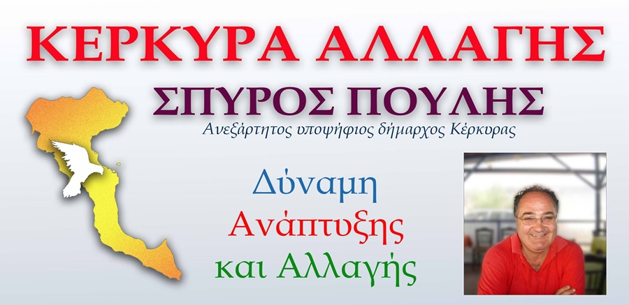 Την Πέμπτη στις 11 το πρώι, στην αίθουσα του πρώην νομαρχιακού συμβουλίου, ο υποψήφιος δήμαρχος Σπύρος Πουλής θα ανακοινώσει μέρος των υποψηφίων του συνδυασμού του “Κέρκυρα αλλαγής” καθώς και το πρόγραμμα της παράταξης.