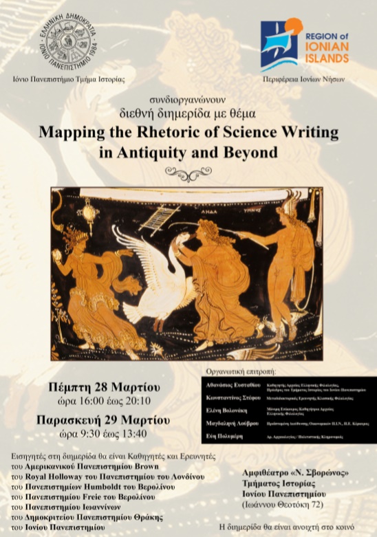 Το Τμήμα Ιστορίας του Ιονίου Πανεπιστημίου και η Περιφέρεια Ιονίων Νήσων οργανώνουν διεθνή διημερίδα με θέμα “MAPPING THE RHETORIC OF SCIENCE WRITING IN ANTIQUITY AND BEYOND”