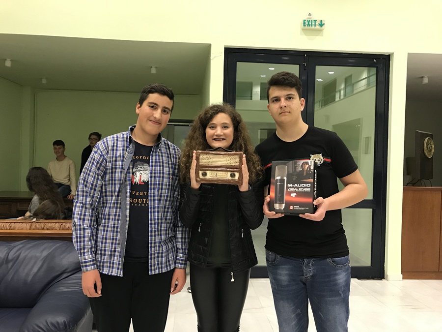 Συγχαίρουμε επίσης τους μαθητές και τις μαθήτριές μας από την Β τάξη, που πλαισίωσαν τη συμμετοχή μας στον διαγωνισμό με τη συγγραφή λογοτεχνικών αφηγημάτων-διηγημάτων με θέμα το ραδιόφωνο, τη συγγραφή άρθρων και τη λήψη ραδιοφωνικών συνεντεύξεων και οι οποίοι εκπροσώπησαν το σχολείο μας στο τριήμερο Ραδιοφωνικό Φεστιβάλ 11-13 Απριλίου στον Βόλο.