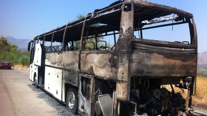 Ένα λεωφορείο κάηκε ολοσχερώς στην περιοχή των Μωραϊτίκων, το Μέγα Σάββατο.