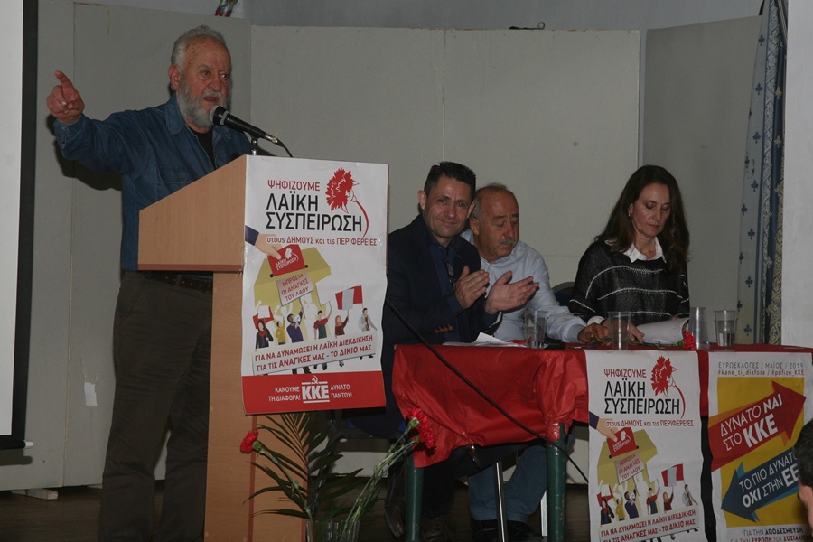 Στη συνέχεια τόνισε πως οι κάτοικοι του δήμου δικαιούνται μια καλύτερη ζωή, από το σκοτάδι τις τρύπες, τα σκουπίδια, την ανεργία και την φτώχια, καταγγέλλοντας τα κόμματα που κυβέρνησαν και κυβερνούν (ΣΥΡΙΖΑ, ΝΔ, ΚΙΝΑΛ/ΠΑΣΟΚ, ΑΝΕΛ) αλλά και τους υποστηρικτές τους στην τοπική διοίκηση. Ακολούθως ανάφερε ότι οι δήμαρχοι της ΛΑΙΚΗΣ ΣΥΣΠΕΡΩΣΗΣ έκαναν τη διαφορά στους δήμους που διοίκησαν τα τελευταία χρόνια συγκρουόμενοι με την αντιλαϊκή πολιτική των κυβερνήσεων και δίνοντας ανάσες στο λαό με μείωση ή και κατάργηση των δημοτικών τελών και άλλα φιλολαϊκά μέτρα.
