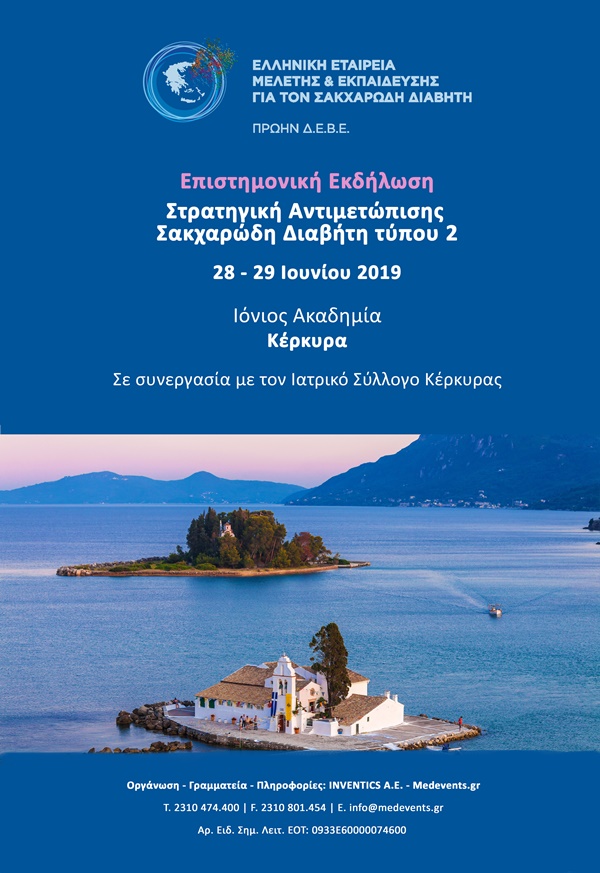 Η Ελληνική Εταιρεία Μελέτης και Εκπαίδευσης για τον Σακχαρώδη Διαβήτη οργανώνει την Επιστημονική Εκδήλωση με θέμα «Στρατηγική Αντιμετώπισης Σακχαρώδη Διαβήτη Τύπου 2» στην Κέρκυρα.