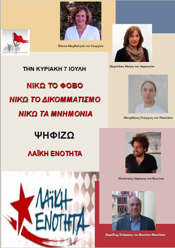 Τους υποψήφιους βουλευτές της στην Κέρκυρα ανακοίνωσε η Λαϊκή Ενότητα.