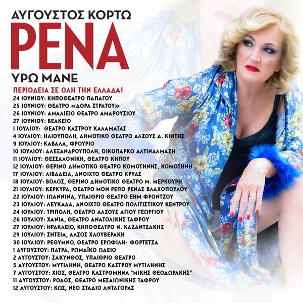 Μετά τη μεγάλη επιτυχία που σημείωσε στο Δημοτικό Θέατρο Πειραιά, η «Ρένα» του Αύγουστου Κορτώ βάζει πλώρη για τα μεγαλύτερα θερινά θέατρα όλης της χώρας.