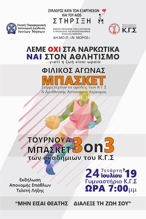 Η εκδήλωση περιλαμβάνει τον τελικό και την τελετή λήξης του τουρνουά μπάσκετ Ακαδημιών του ΚΓΣ και στην συνέχεια φιλικό αγώνα μπάσκετ μεταξύ της ομάδας ανδρών του ΚΓΣ και της Αστυνομικής Διεύθυνσης Κέρκυρας.