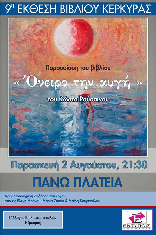 Το βιβλίο του Κώστα Ρούσσινου θα παρουσιαστεί την Παρασκευή 2 Αυγούστου, στις 21:30.