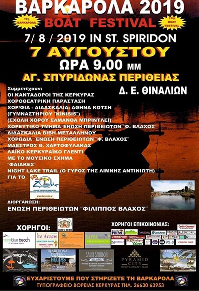 Την Κυριακή 7 Αυγούστου, στις 9μ.μ, θα πραγματοποιηθεί η φετινή Βαρκαρόλα στον Άγιο Σπυρίδωνα Περίθειας.