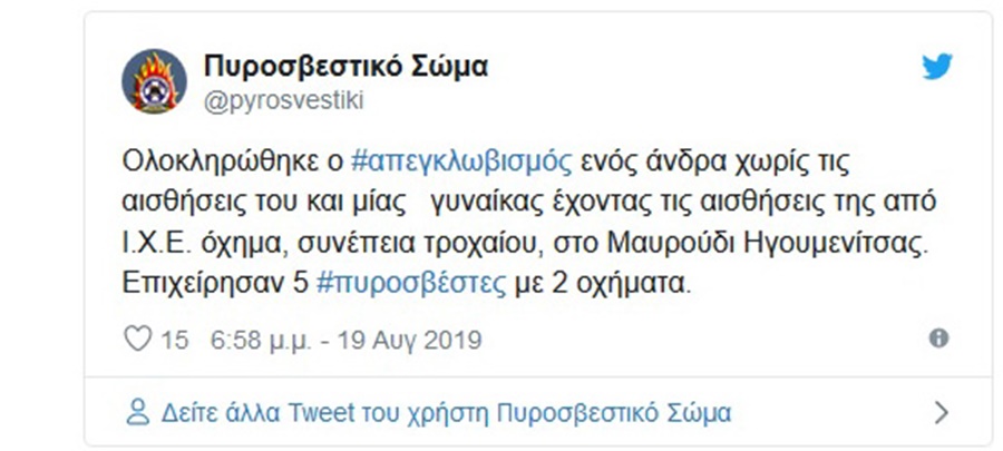 Στο σημείο έσπευσαν 5 πυροσβέστες με 2 οχήματα απεγκλωβίζοντας δυστυχώς νεκρός του τον οδηγό και τραυματισμένη την ηλικιωμένη γυναίκα η οποία διακομίσθηκε με ασθενοφόρο του ΕΚΑΒ στο νοσοκομείο Φιλιατών.