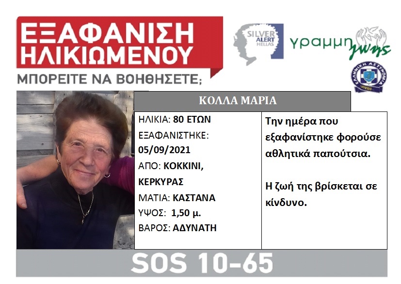 Εάν γνωρίζετε κάτι επικοινωνήστε με την υπηρεσία Silver Alert, όλο το 24ωρο, στην Εθνική Γραμμή SOS 1065.