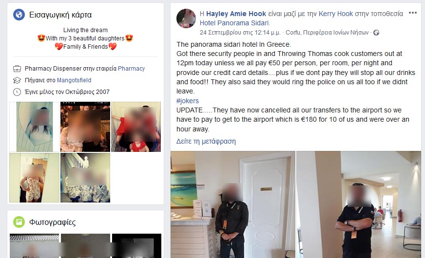 Ο θόρυβος που έχει προκληθεί πανελλαδικά από το δημοσίευμα του Έθνους αλλά και στη Μ. Βρετανία από την ανάρτηση στο Facebook με την οποία καταγγέλλεται ότι το ξενοδοχείο Πανόραμα στο Σιδάρι απαίτησε από τους πελάτες της Thomas Cook να πληρώσουν, αλλιώς θα τους έδιωχνε με security, δεν βασίζεται τελικά στα πραγματικά γεγονότα.