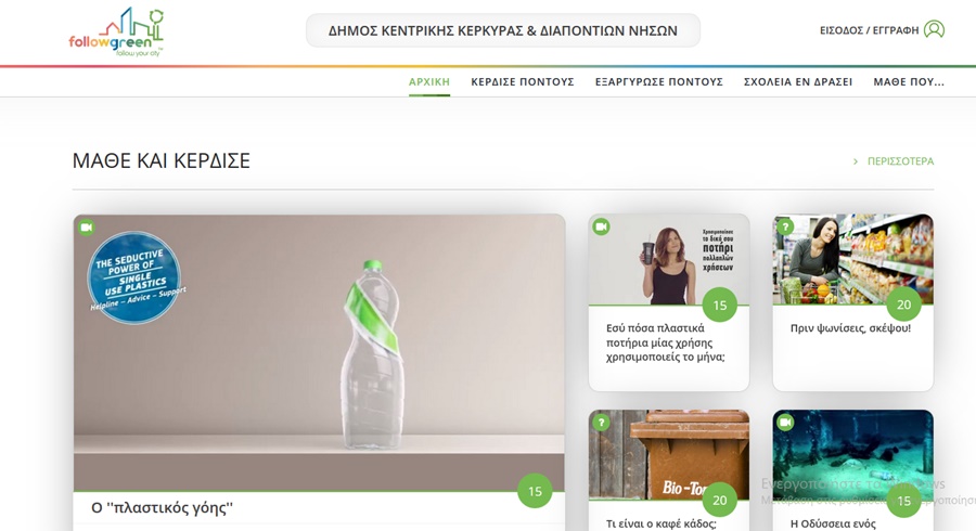 Άνοιξε η διαδικτυακή πλατφόρμα ανακύκλωσης του Δήμου Κεντρικής Κέρκυρας και Διαποντίων Νήσων Followgreen, η οποία θα είναι συνεχώς διαθέσιμη και προσβάσιμη για τους πολίτες του Δήμου.