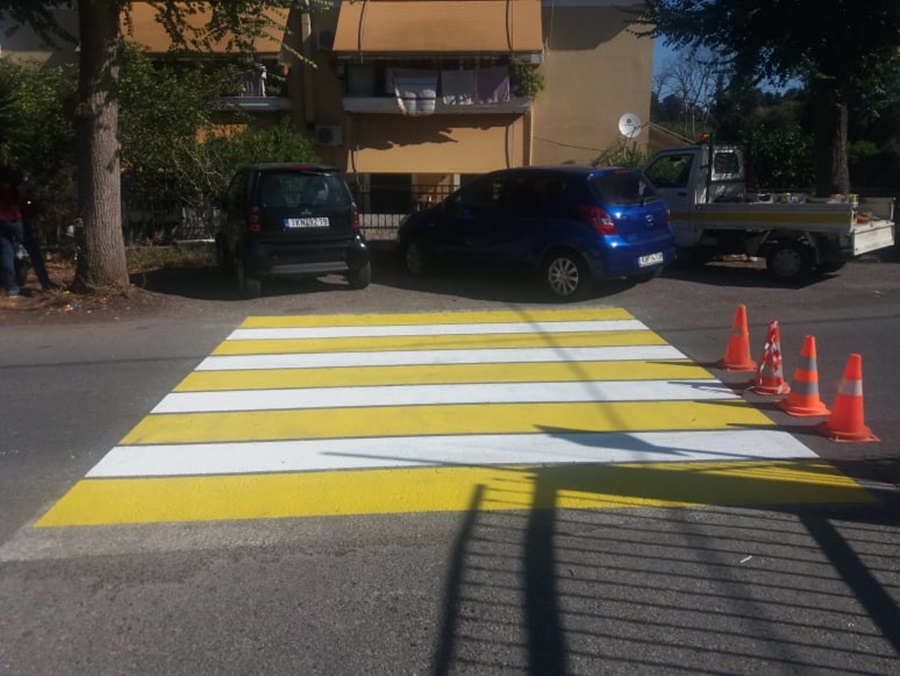 Οι διαγραμμίσεις στους δρόμους και στις διαβάσεις συνεχίζονται με αμείωτη ένταση, στην κατεύθυνση της ενίσχυσης της οδικής ασφάλειας και ιδιαίτερα σε περιοχές που υπάρχουν σχολεία.