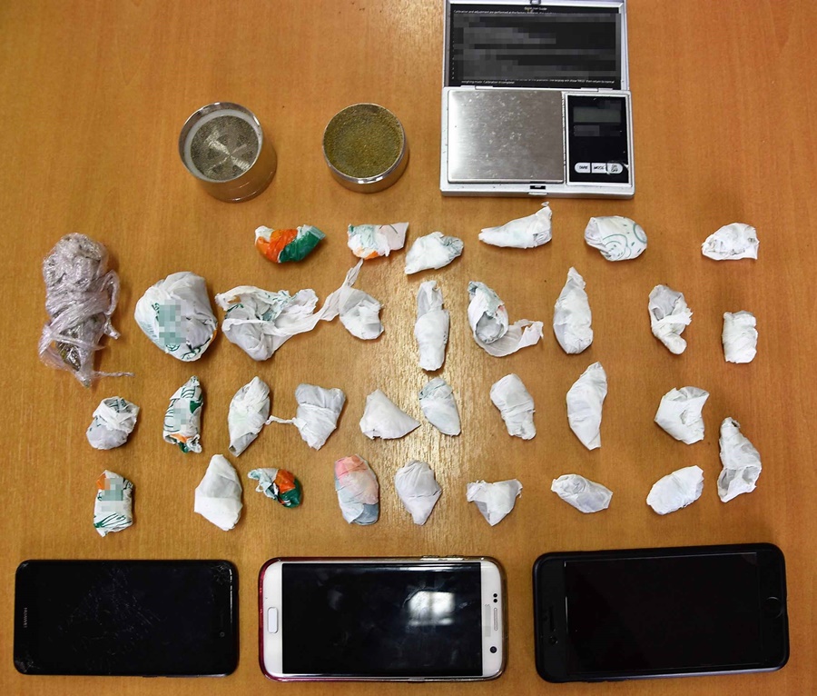 Κατασχέθηκαν μεταξύ άλλων (33) συσκευασίες με (90,4) γραμμάρια ακατέργαστης κάνναβης και μία ζυγαριά ακριβείας