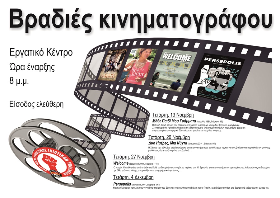 Την Τετάρτη η προβολή της ταινίας “Δύο ημέρες, Μια νύχτα” από τον Κερκυραϊκό Σύνδεσμο Ιδιωτικών Υπαλλήλων, στις 20:00 στο Εργατικό Κέντρο Κέρκυρας.
