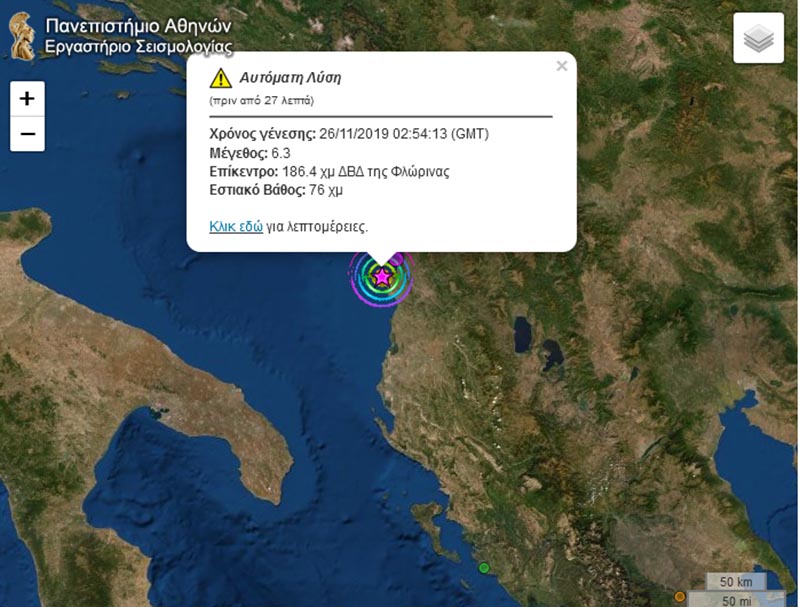 Ισχυρότατος σεισμός μεγέθους 6,3R σύμφωνα με το Γεωδυναμικό Ινστιτούτο του Πανεπιστημίου Αθηνών (ευρωπαϊκά σεισμολογικά ινστιτούτα δίνουν ως αυτόματη λύση έως και 6,4R) έπληξε την Αλβανία, ανοικτά του Δυρραχίου, 40 χιλιόμετρα δυτικά των Τιράνων, στο ίδιο περίπου εστιακό σημείο του καταστροφικού σεισμού 5,4R που σημειώθηκε στις 21 Σεπτεμβρίου.