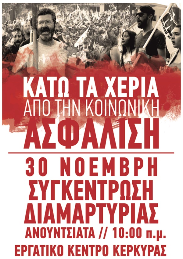 “Κοινωνική ασφάλιση για όλους, αποκλειστικά δημόσια και υποχρεωτική” ζητά από την Κυβέρνηση το Εργατικό Κέντρο και γι’ αυτό καλεί σε συγκέντρωση στις 30 Νοεμβρίου.