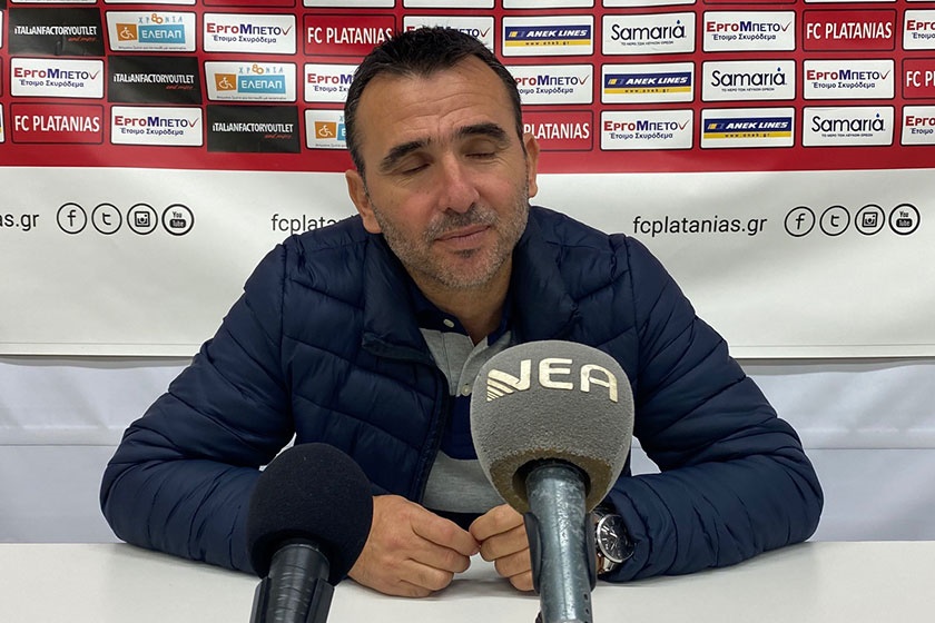 «Συγχαρητήρια στην ομάδα του Πλατανιά, ήταν πολύ καλύτερη από μας. Εμείς απλά ήρθαμε να δώσουμε συμμετοχή… Δυστυχώς η εικόνα μας δεν ήταν καθόλου καλή και αν θέλετε τα πρώτα 45’ όπου δεχτήκαμε το γκολ στις καθυστερήσεις δείξαμε σε αυτό το χρονικό σημείο την απειρία που έχουμε σαν ομάδα. Παρ’ όλα αυτά, ο Πλατανιάς ήταν πολύ καλύτερος και στα δύο ημίχρονα και ειδικότερα στο δεύτερο ήταν καταιγιστικός. Συγχαρητήρια και εύχομαι να υλοποιήσει τους στόχους της η ομάδα του Πλατανιά. Οσο για μας, συνεχίζουμε αυτό τον Γολγοθά, δυστυχώς η ομάδα μας είναι στο βυθό».