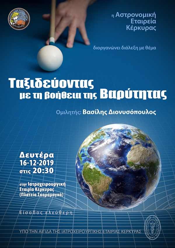 Η Αστρονομική Εταιρεία Κέρκυρας διοργανώνει διάλεξη με θέμα «Ταξιδεύοντας με τη βοήθεια της Βαρύτητας»