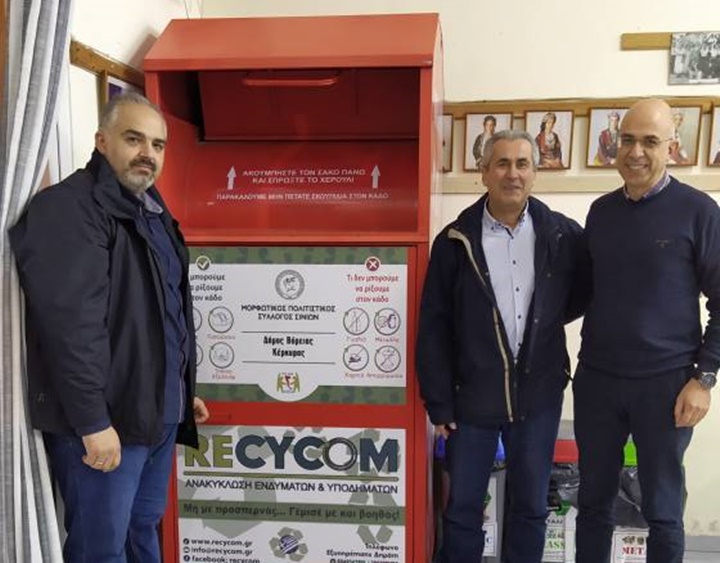Η τοποθέτηση κόκκινου κάδου ανακύκλωσης ρούχων από τον πολιτιστικό σύλλογο Σινιών έγινε σε συνεργασία με το ΟΛΟΙ ΜΑΖΙ ΓΙΑ ΤΗΝ ΚΕΡΚΥΡΑ.