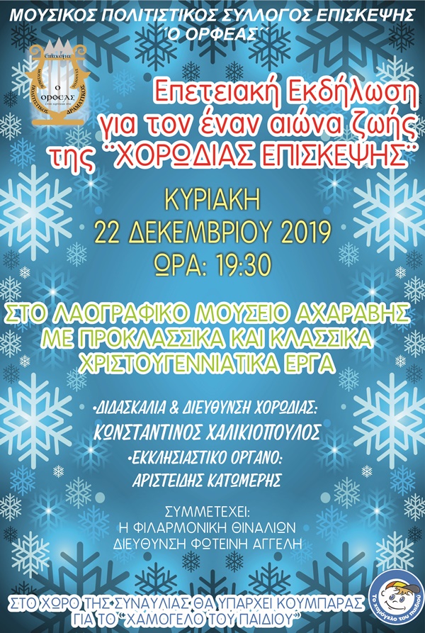 Την Κυριακή 22 Δεκεμβρίου θα πραγματοποιηθεί επετειακή εκδήλωση για τον ένα αιώνα ζωής της “Χορωδίας Επίσκεψης”.