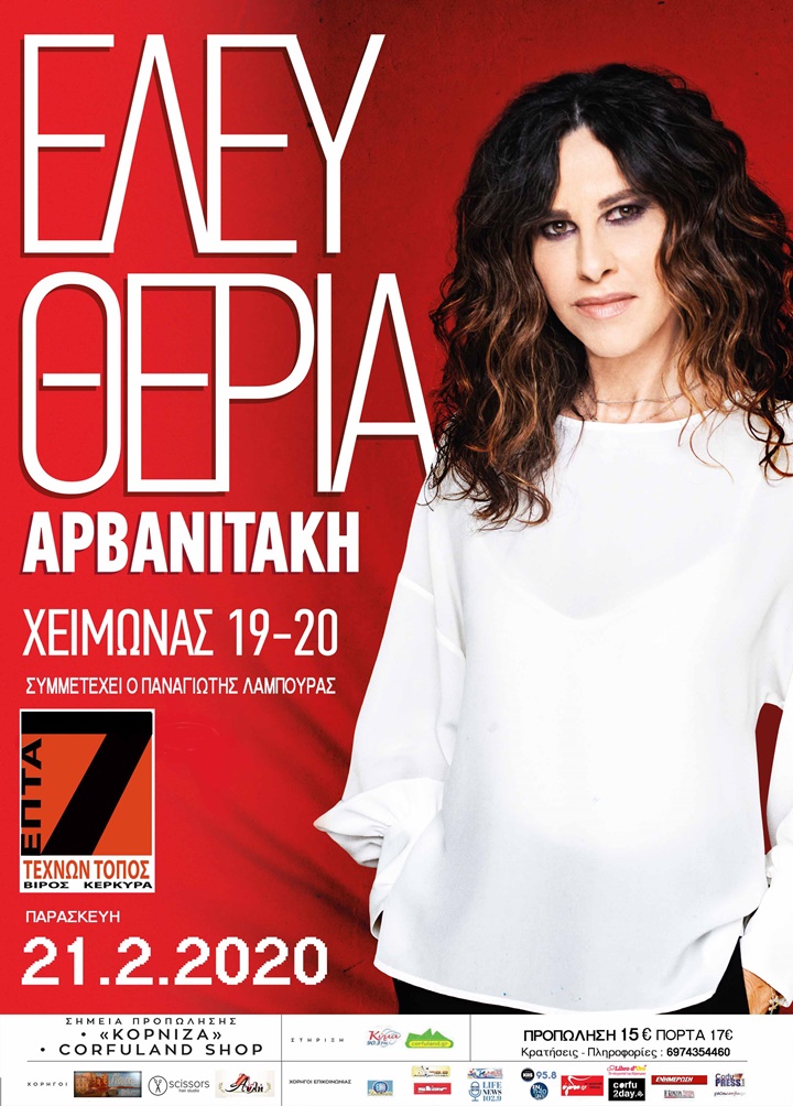 Με νέο δίσκο στις αποσκευές της – τίτλος «Τα μεγάλα ταξίδια» (μουσική Θέμης Καραμουρατίδης, στίχοι Λήδα Ρουμάνη – κυκλοφορεί από την Panik Records) και με το πρώτο single με τίτλο «Οι μνήμες» να έχει κερδίσει τις προτιμήσεις των ραδιοφωνικών παραγωγών της χώρας και τις καρδιές του κοινού, η Ελευθερία Αρβανιτάκη επιστρέφει στην σκηνή του ΕΠΤΑ στην Κέρκυρα μετά από τρία χρόνια. Μαζί της επί οι σκηνής πέντε εξαιρετικοί σολίστες, σταθεροί της συνεργάτες: Αλέξανδρος Δράκος Κτιστάκης (τύμπανα, ενορχηστρώσεις), Δημήτρης Τσάκας (σαξόφωνο, κιθάρα), Γιώργος Γεωργιάδης (μπάσο), Νίκος Μέρμηγκας (λαϊκά έγχορδα), Γιάννης Κυριμκυρίδης (πιάνο).
