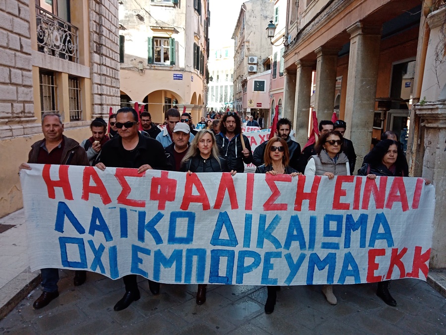 Η εργατική τάξη της Κέρκυρας έδωσε δυναμικό παρών στην συγκέντρωση του Εργατικού Κέντρου , κατήγγειλε την μεθόδευση κυβέρνησης, εργοδοτών, εργοδοτικού και κυβερνητικού συνδικαλισμού να πραγματοποιήσουν με fast track διαδικασίες « συνέδριο» της ΓΣΕΕ στις 25 Φλεβάρη , που θα περιλαμβάνει μόνο εκλογική διαδικασία με την συμμετοχή εργοδοτών αντιπροσώπων, την επιτήρηση και την υψηλή εποπτεία Πρωθυπουργού, Εισαγγελέα του Αρείου Πάγου και άλλων, καθώς και την περιφρούρηση των ΜΑΤ, της ΚΥΠ, της Αεροπορίας…και του Ναυτικού…