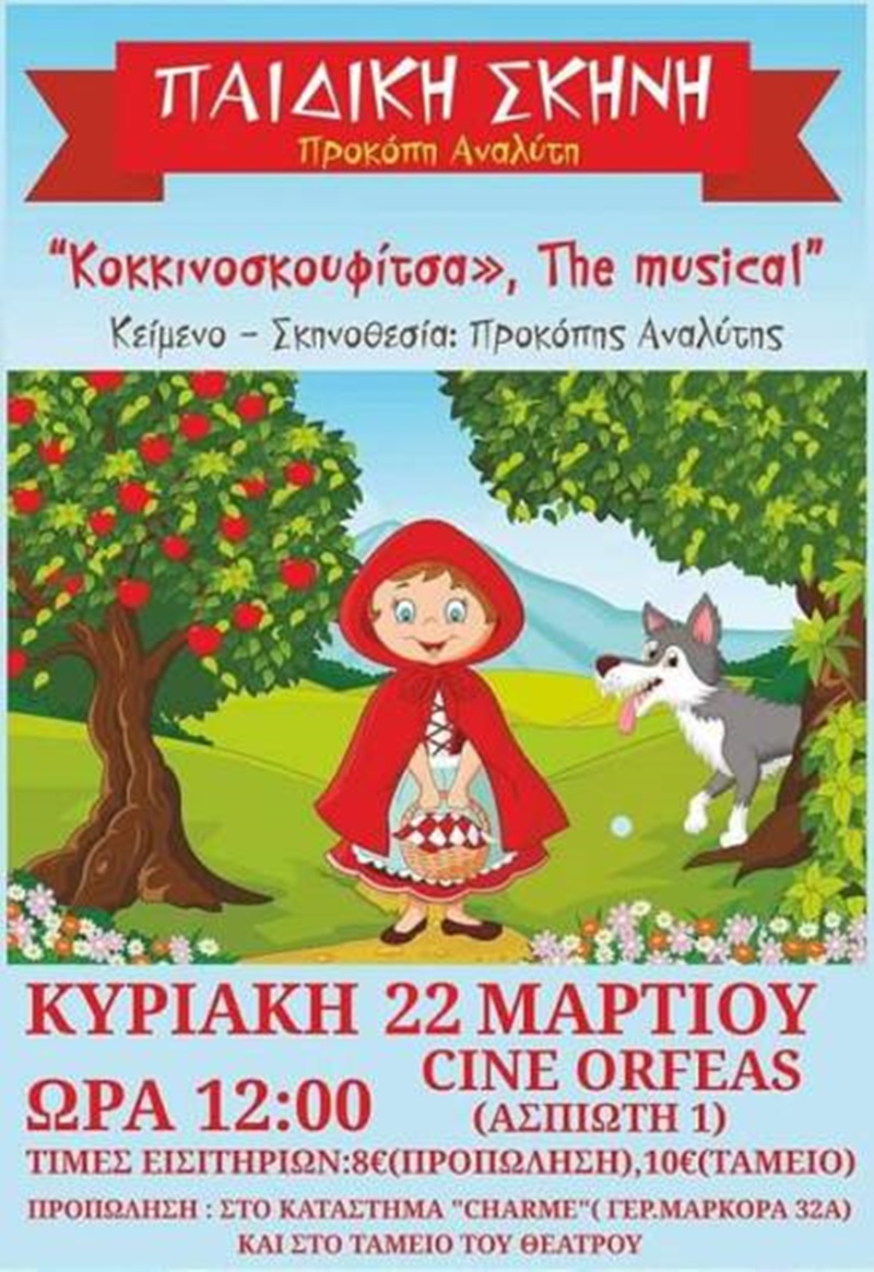 Η Παιδική Σκηνή του Προκόπη Αναλύτη παρουσιάζει τη “Κοκκινοσκουφίτσα”, The musical τη Κυριακή 22 Μαρτίου και ώρα 12.00 στο Cine Orfeas.