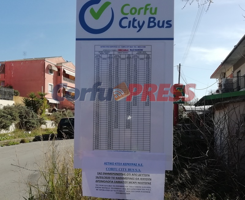 Το Αστικό ΚΤΕΛ Κέρκυρας, προφανώς λόγω κορωνοϊού, περιορίζει τα καθημερινά του δρομολόγια.