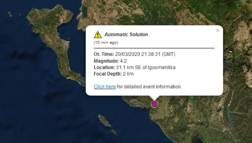 Μεγάλη σεισμική δόνηση μεγέθους 5,6 R σημειώθηκε στις 02:49 14 χιλιόμετρα ΑΒΑ της Πάργας. Είχε προηγηθεί προσεισμός στις 23:38 μεγέθους 4,3R. Λεπτομέρειες για το αν υπάρχουν ζημιές δεν έχουν γίνει ακόμα γνωστές.