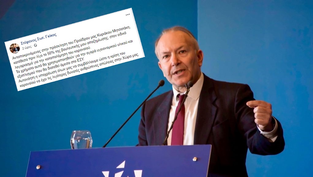 Πιο συγκεκριμένα, ο κ. Γκίκας έγραψε στην ανάρτησή του ότι “ανταποκρινόμενος στην πρόσκληση του Προέδρου μας Κυριάκου Μητσοτάκη, κατέθεσα πριν λίγο το 50% της βουλευτικής μου αποζημίωσης, στον ειδικό λογαριασμό για την καταπολέμηση του κορονοϊού.